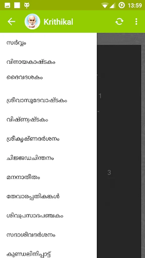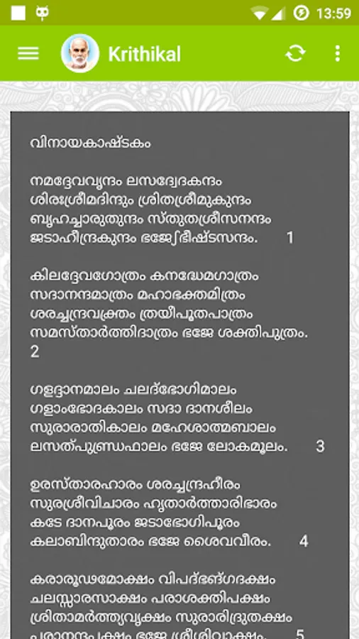 Krithikal of Sree Narayana Guru. Includes 'Guru Pushpanjali Manthram' written by Chaithanya Swamikal (Which is corrected by Sree Narayana Guru)