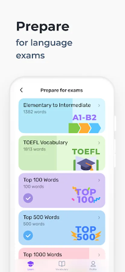 • WRD adapts to your own pace and builds a personal learning plan for your level.