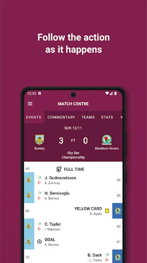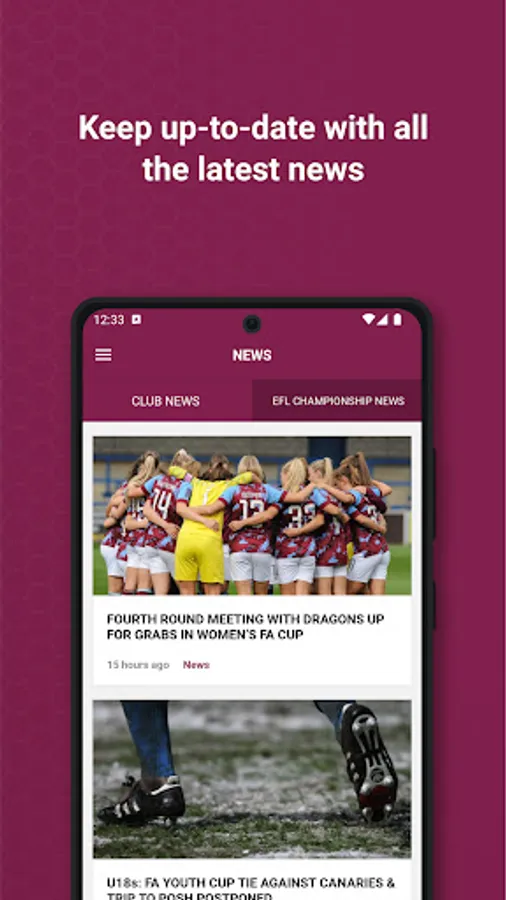 Never miss a news item as all the latest happenings from your beloved Clarets are right there on your device in the palm of your hand. With scores from around the leagues and a detailed match centre from every game, all the information you could ever want is right at your fingertips, 24-7.