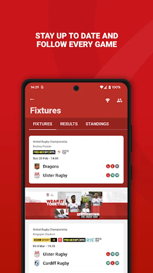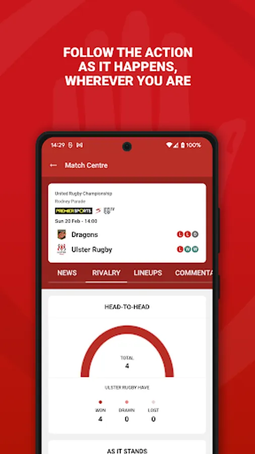 The Ulster Rugby app is available free of charge, and customisable push notifications are available to ensure you are the first to hear about what matters most to you.