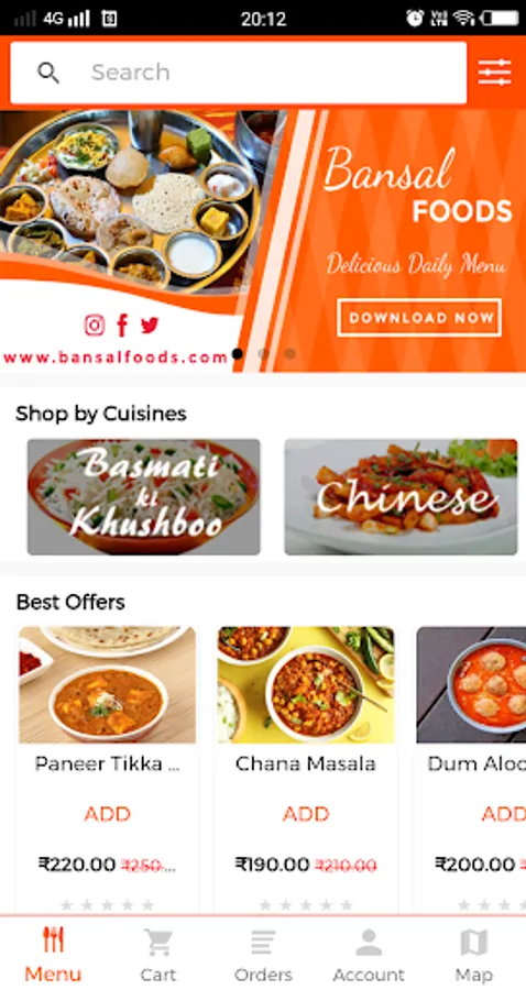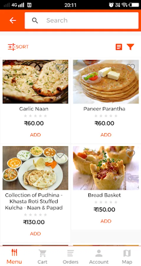 We have a wide menu list that includes South Indian, North Indian, Chinese, Chaats, and beverages under the categories Hearth Stone (Snacks), Desi Kona (North-Indian), Super Tambi (South-Indian), and Chow-Ho-Jaye (Chinese).