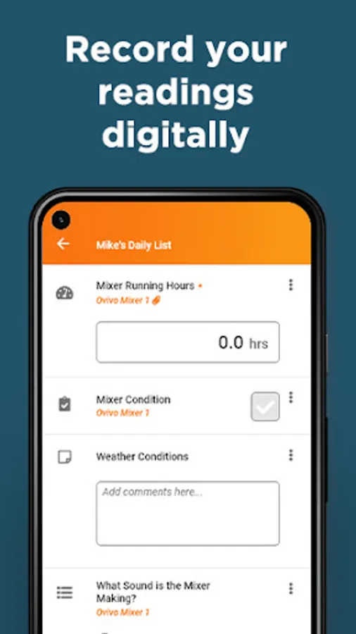 Do your daily rounds on your device. Refer to attached media or attach photos to your inspection rounds. Automatically update charts / tables with the recorded data.