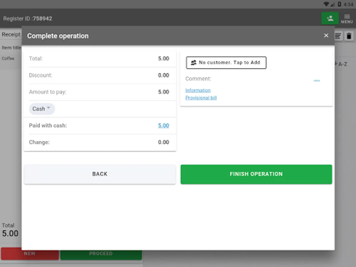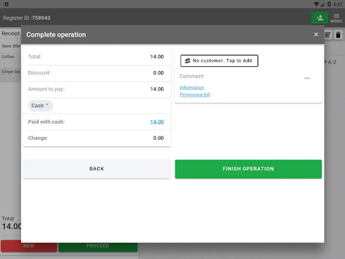 The app lets you process sales, credit and apply discounts, bonus points, handle coupons, authenticate customers and use other services, offered by inCust platform. The application operates in online or offline mode with periodic data synchronization.