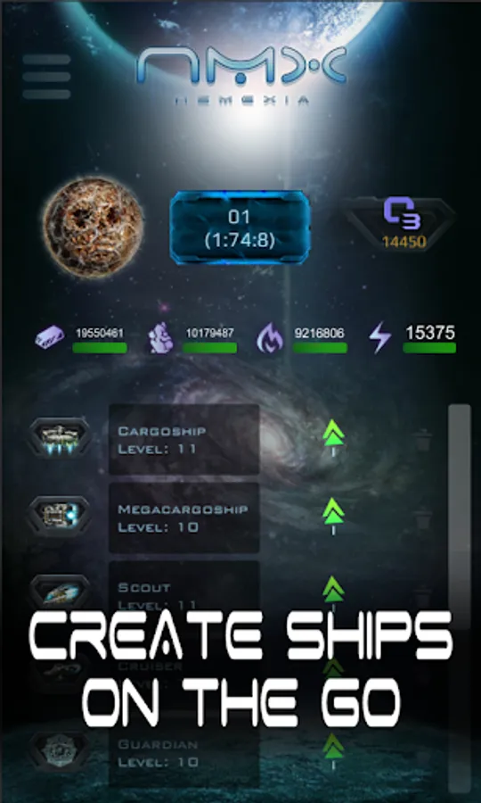 Upgrades: You need Upgrade points accumulated by attacking the renegades using your web-based account. Then you can use the app to upgrade your vessels. Upgrading transport ships will increase their carrying capacity while upgrading attacking vessels can inflict more damage and withstand ferocious attacks. Upgrade the rest of the buildings to improve your research, ships building ability, upgrades, and defenses.