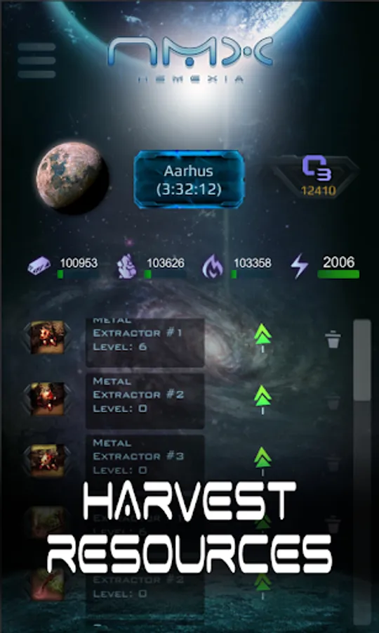 Buildings: Upgrade your Metal#1, Mineral #1, and Gas#1 buildings to level 10 in order to have more resources and unlock other buildings. Always keep an eye on the energy levels (first screen flash sign) and upgrade your Infrared and Uranium based plants accordingly.