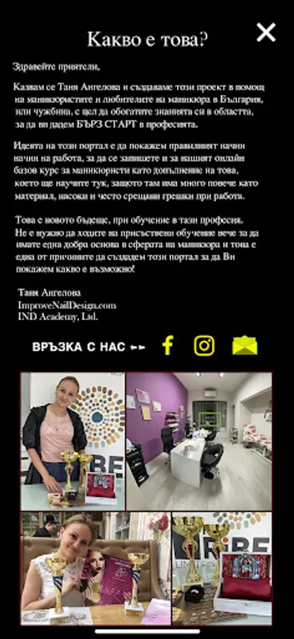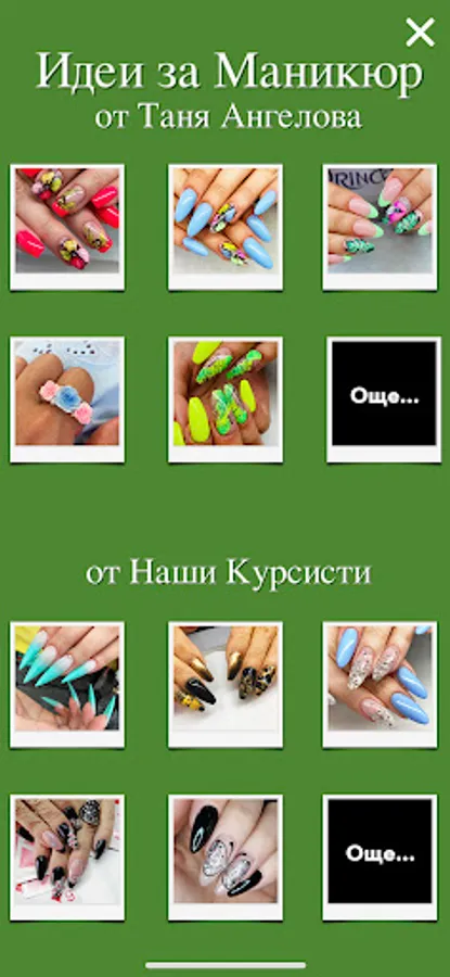 If you want to become a manicurist by profession, but you don't know where to start and you don't know what to do, this application is a good start for you. Here, we will showcase various manicure ideas as well as numerous educational modules presented entirely by Tanya Angelova, who has 16+ years of experience in the industry.