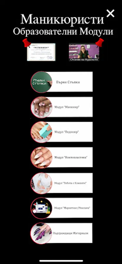 In this application you will find useful information about the profession of manicurist-pedicurist. One of a kind! This is the future and we will build it together! Face-to-face courses are still relevant, but over time, everything in this profession can be learned entirely ONLINE. We say this because we already have fully online course graduates who have never come to us, but their results are impressive based on what we have shown them as a way of working, possible mistakes and when working with students. We have created a working system to learn the profession remotely, without attending face-to-face courses, and without adhering to a schedule. Therefore, we created this portal to help as many people as possible who want to do it, but do not have the opportunity to attend face-to-face courses, or do not have time for it due to other commitments.