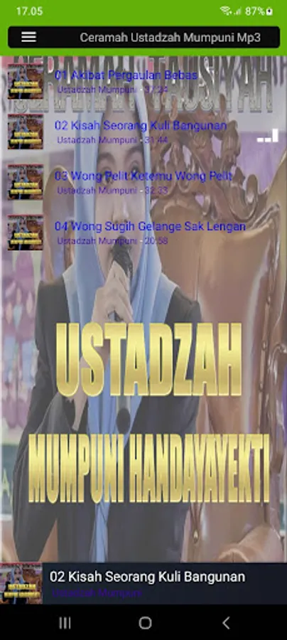 For listeners of Ustadzah Mumpuni H's Tausiyah Lectures, this application is suitable for you because it contains Selected and easy-to-hear Lectures or Tausiyah delivered by Ustadzah Kondang from Kroya Cilacap Ustadzah Mumpuni H delivered live or offline which is well known in the community