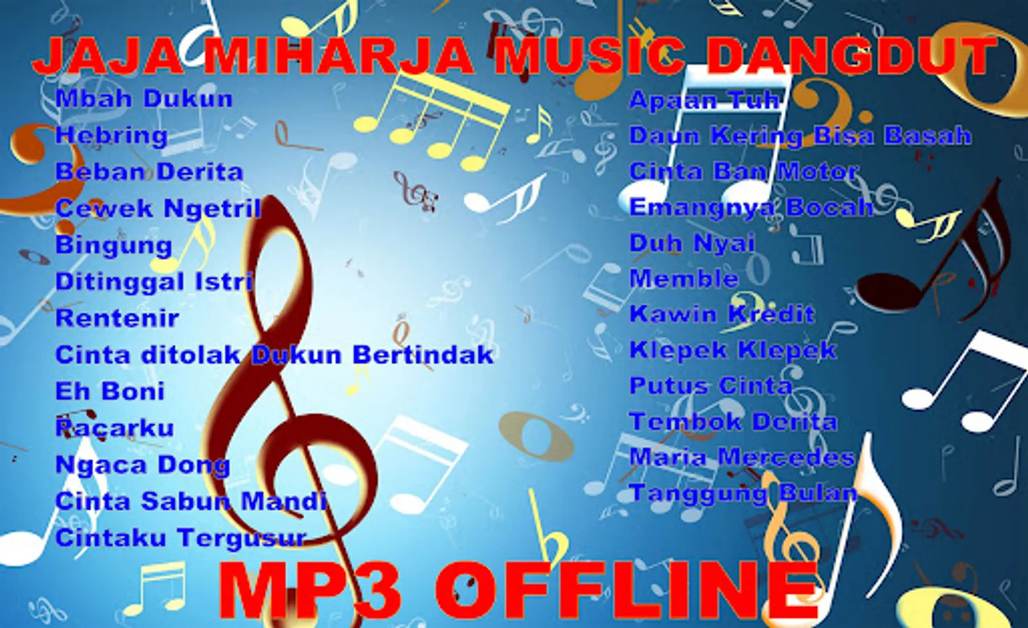 If you are fans of Dangdut Jaja Miharja songs then you download this application and