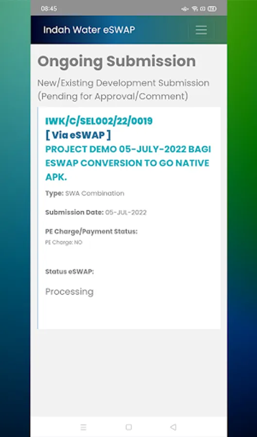 Indah Water eSWAP app is an authenticator app for login at Indah Water eSWAP Portal and as monitoring app for CA submission made via Indah Water eSWAP Portal.