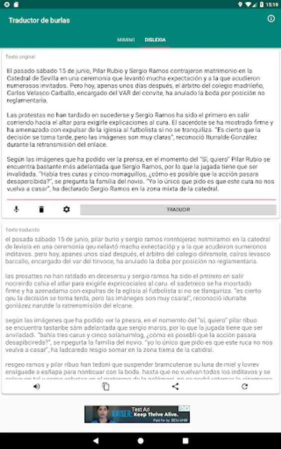 - The text to be translated can be written directly or by voice by clicking on the microphone icon.