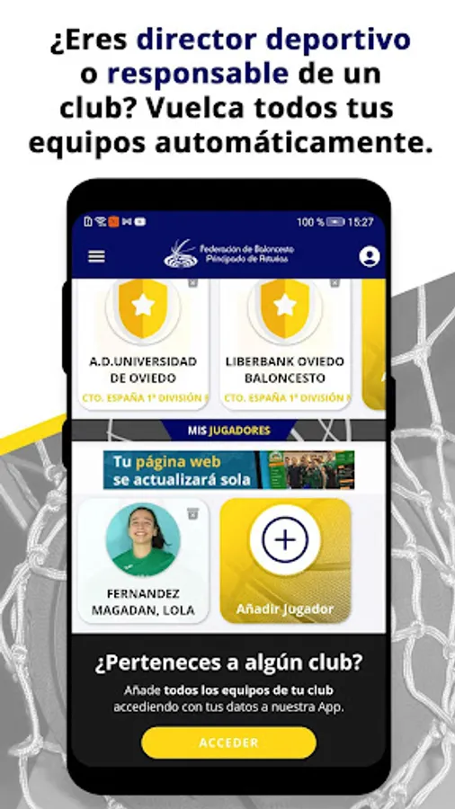 - If you are a sports director or manager of a club, you can access your data from the initial screen of the App and automatically dump all the teams of your club that you are authorized to view.