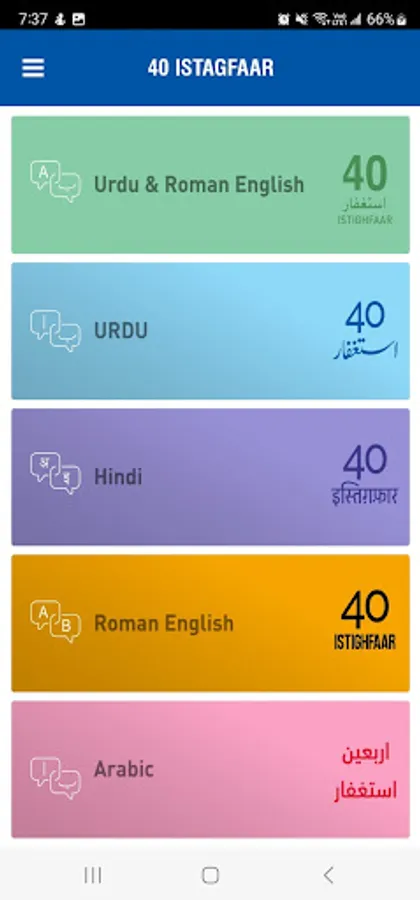 40 ISTAGFAAR Application with Translation in 5 Different Languages by Hazrat Maulana Muhammad Yunus Ibn Hazrat Maulana Umar Sahab Palanpuri Rahmatullahi Alaih.