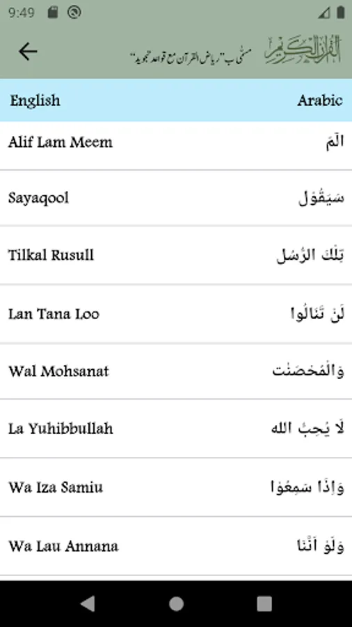 ❖ Sura'h List option to directly go to the specific Sura'h is available.