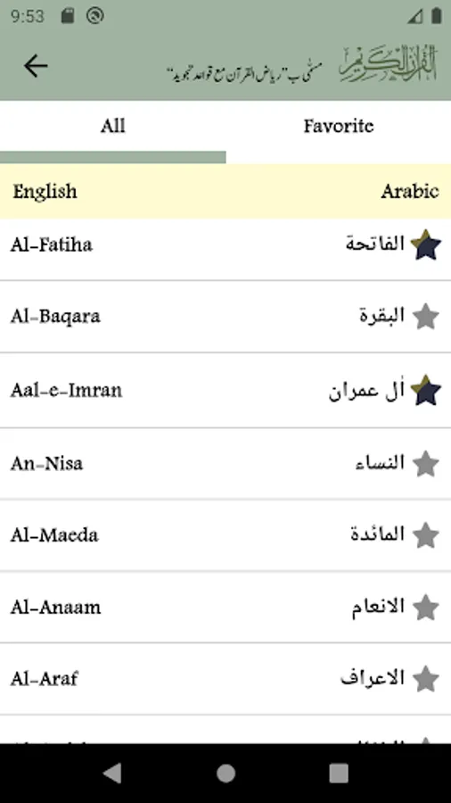 ❖ Option to favourites the Sura'h as well book mark the pages are available.
