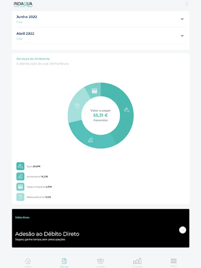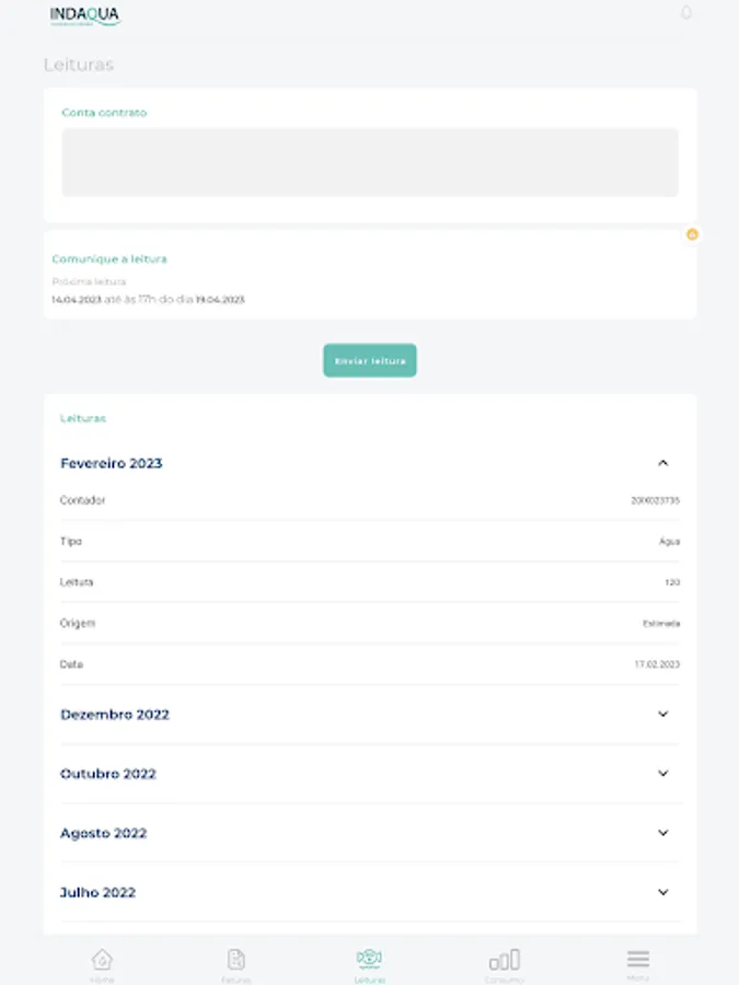 Customers are INDAQUA's main priority. We have created a new service: a free mobile application that allows you to track your consumption, make payments, receive notifications to report readings, know the quality of the water, among other features. We bet on a relationship of proximity and transparency, thinking of your comfort.