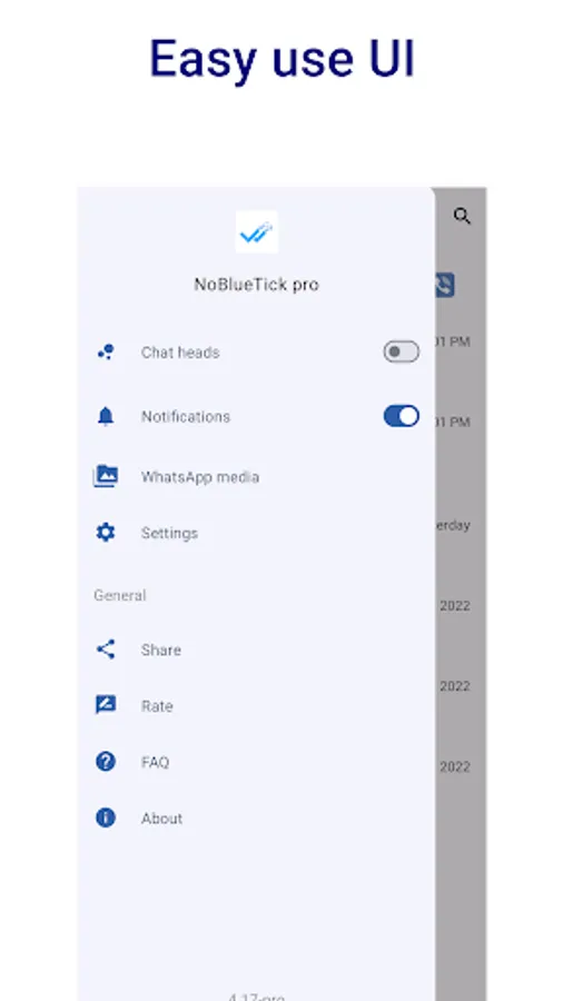 馃敟 Enable or disable NoBlueTick for different chat apps like whatsapp, viber or messenger, and be invisible for selected chats only