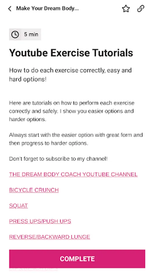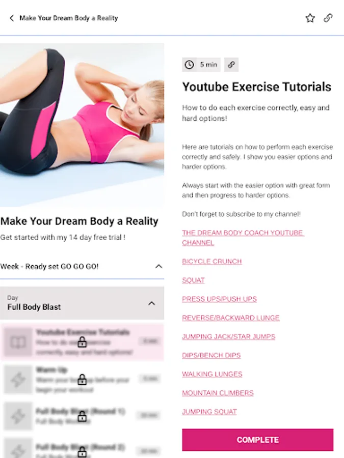 • Dream Body - Try out my easy-to-follow body conditioning workouts! This can be trialed at home or in a gym. This is to get e feel for the interactive style of the app, and a feel for the workout designs.