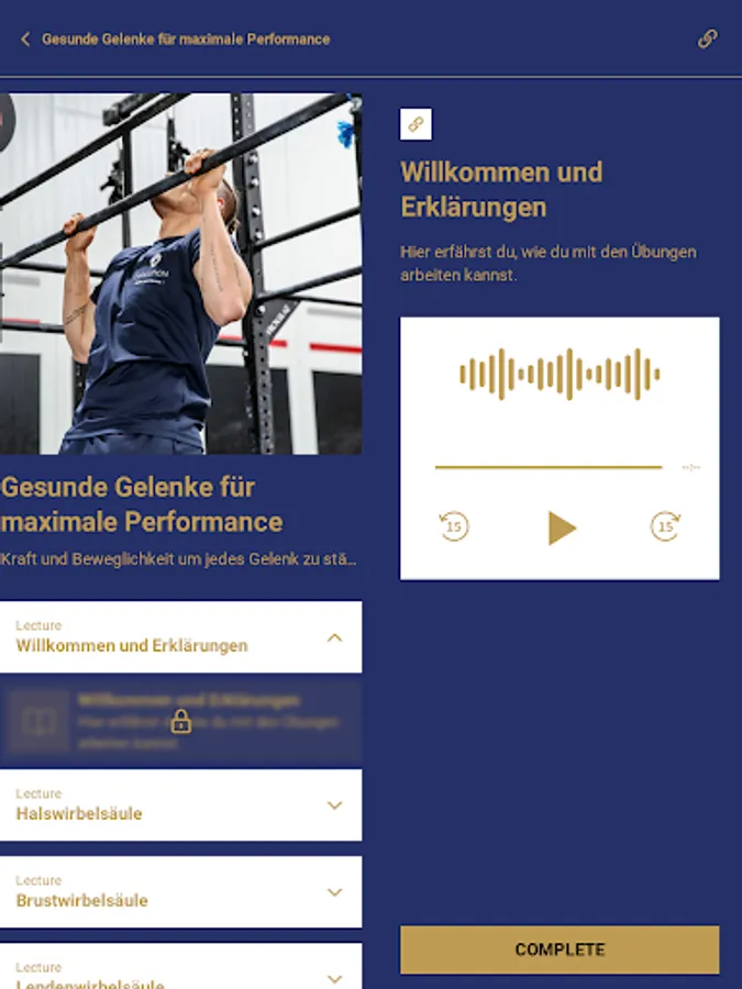 Du suchst ständig die perfekten Übungen um maximalen Fortschritt aus deinem Training zu holen, Schmerzen oder Dysbalancen loszuwerden und verbringst Stunden auf der Suche danach? Diese App ist die Lösung. Übersichtlich nach Gelenken sortiert, findest du Übungen zur Stärkung der Muskulatur, der Beweglichkeit und der Gelenkgesundheit, um dir ein perfektes körperliches Fundament aufzubauen, mit dem du in jeder Sportart glänzen wirst. Neben einem umfassenden Übungskatalog mit Erklärungen, die auch die Anpassung an verschiedene Leistungslevel beinhalten, findest du herausfordernde Workouts, die darauf ausgelegt sind deinen Körper in perfekte Balance zu bringen. Du bist dir mit einigen Übungen unsicher? Keine Sorge, in unserer App kannst du direkt mit den Coaches in den Austausch kommen. Sie helfen dir die Übungen entsprechend deiner körperlichen Gegebenheiten anzupassen. Außerdem kannst du selbst Chatgruppen eröffnen und mit gleichgesinnten schreiben. Vielleicht findest du ja auch Menschen aus deinem Ort und es ergibt sich über den Chat die Möglichkeit sich zu vernetzen und gemeinsam zu trainieren.