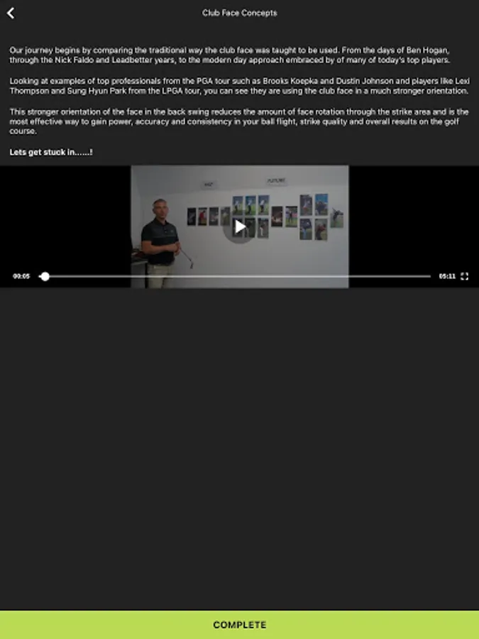 It's a blend of tutorials, stretching, specifically targeted drills and practice formula designed to help you play with more confidence and consistency. You will increase power and accuracy, improve strike quality and consistency, eliminate fat and thin shots, improve distance control, reduce your scores and feel like you own your game!