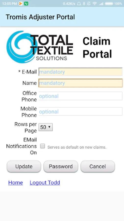 Tromis Adjuster Portal Screenshots
