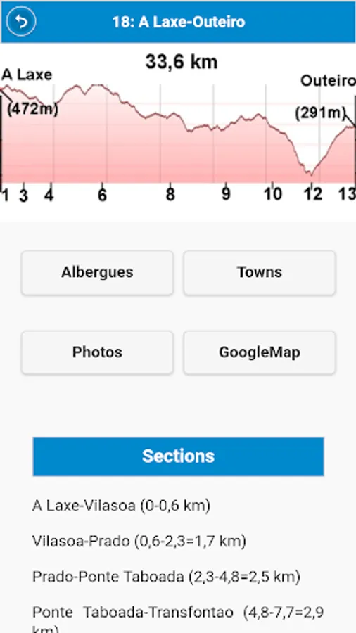 -All the hostels (albergues) and hundreds of hotels (in the app Camino Sanabres PREMIUM)