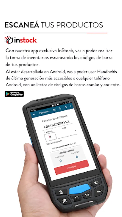From InStock you will be able to count the physical stock, just by scanning the barcodes, from any Android device, either a handheld or a cell phone with an OTG cable connected to any barcode reader.