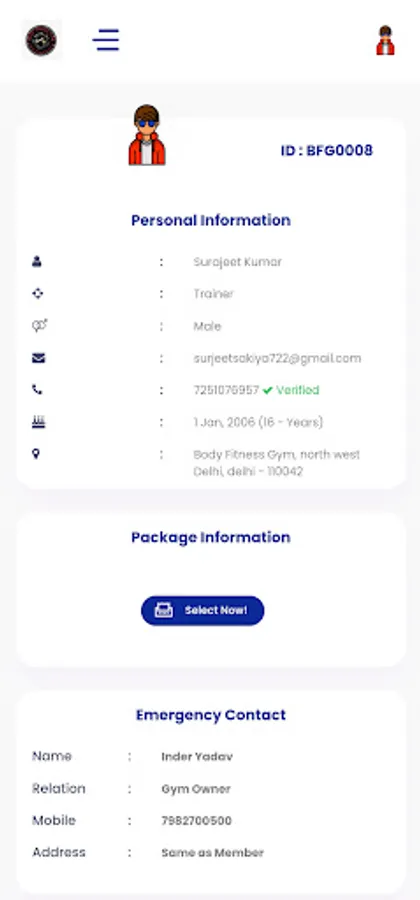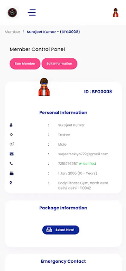 using this application user of the GYM can manage their account, attendance, & payments of package fess, reminders etc.