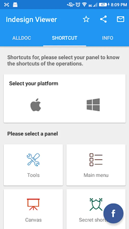 This app previews .indd files created using Adobe InDesign. View InDesign file content & shortcuts in your android device without buying costly license.