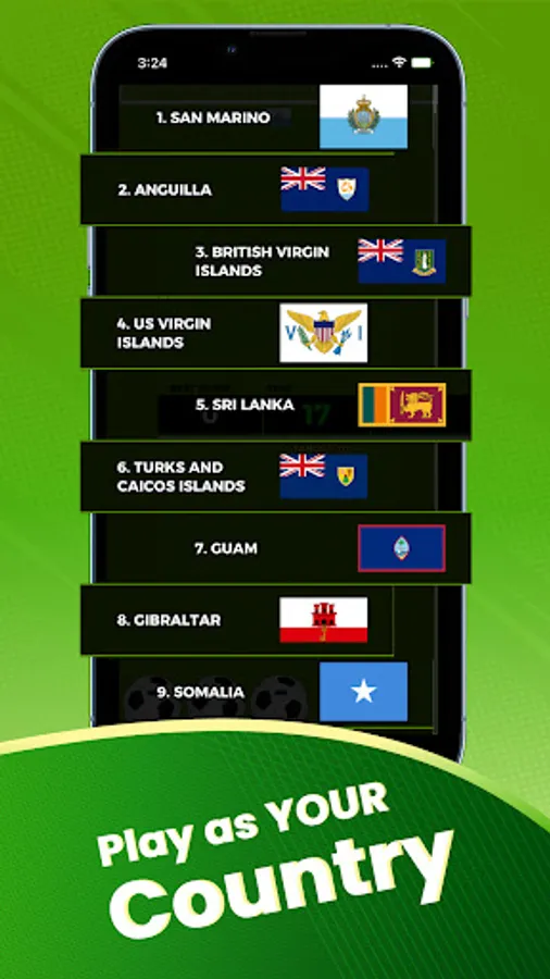 It starts with San Marino (VERY EASY) and ends with Brazil (SUPER HARD).