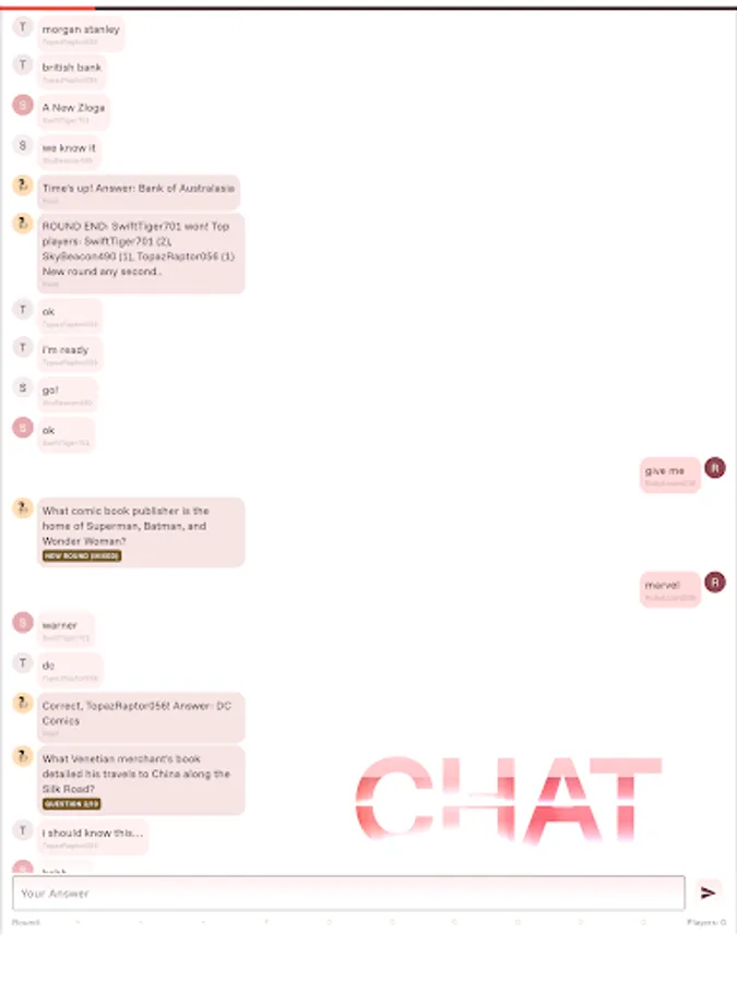 This quiz respects your intelligence. It's authentic trivia - the kind you'd find at intense pub quiz nights where you and your friends battle it out with pure knowledge. Our players don't mess around; for 'What's the capital of Australia?', they just type 'Canberra' cold. No hints needed, no second guesses about Sydney. If you're confident in your knowledge and ready to put your thinking skills to the test, then step right up!