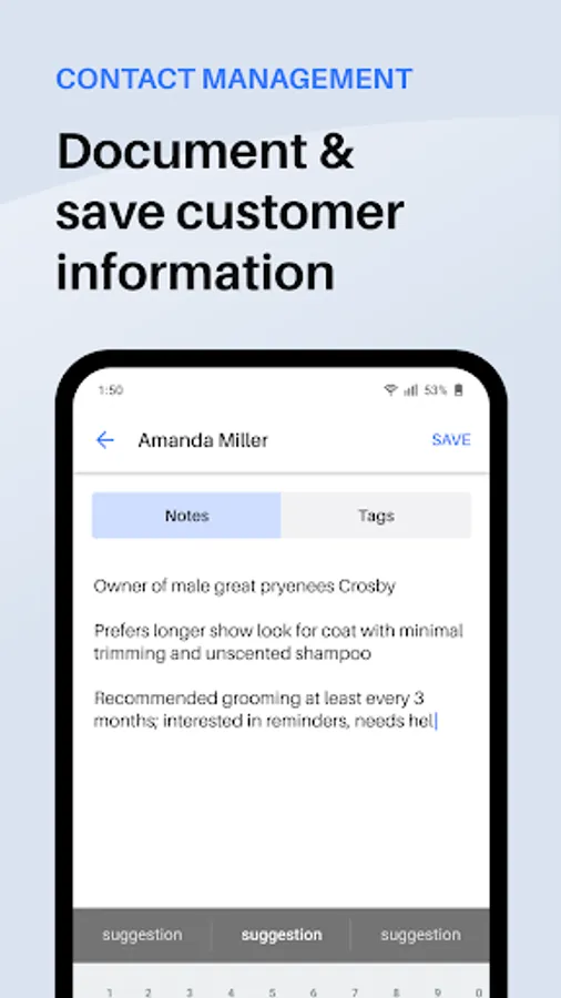 Save important details about your customers easily, and reference them quickly to add a personal touch to every conversation. Organize customers into lists for sharing updates, offers, and more.