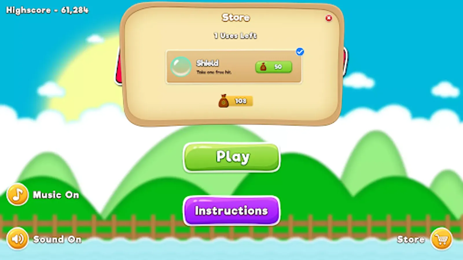 3、Use your coins to purchase an ability (shield) from the in-game store. Shield ability will allow you to take a hit without losing a life. An ability lasts for 3 turns.