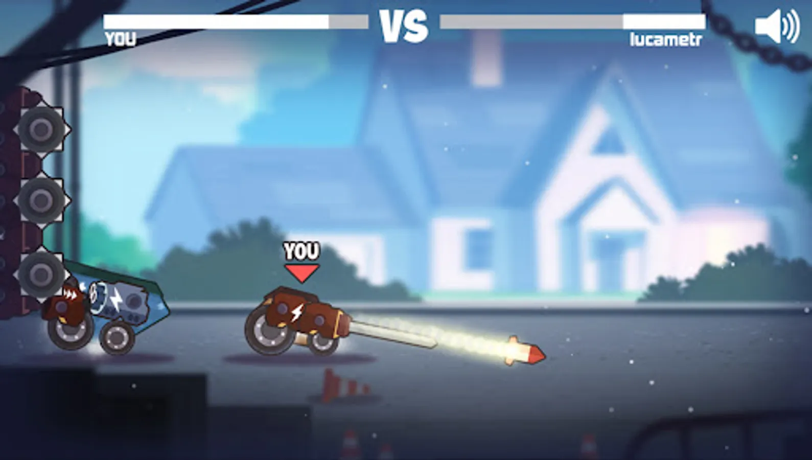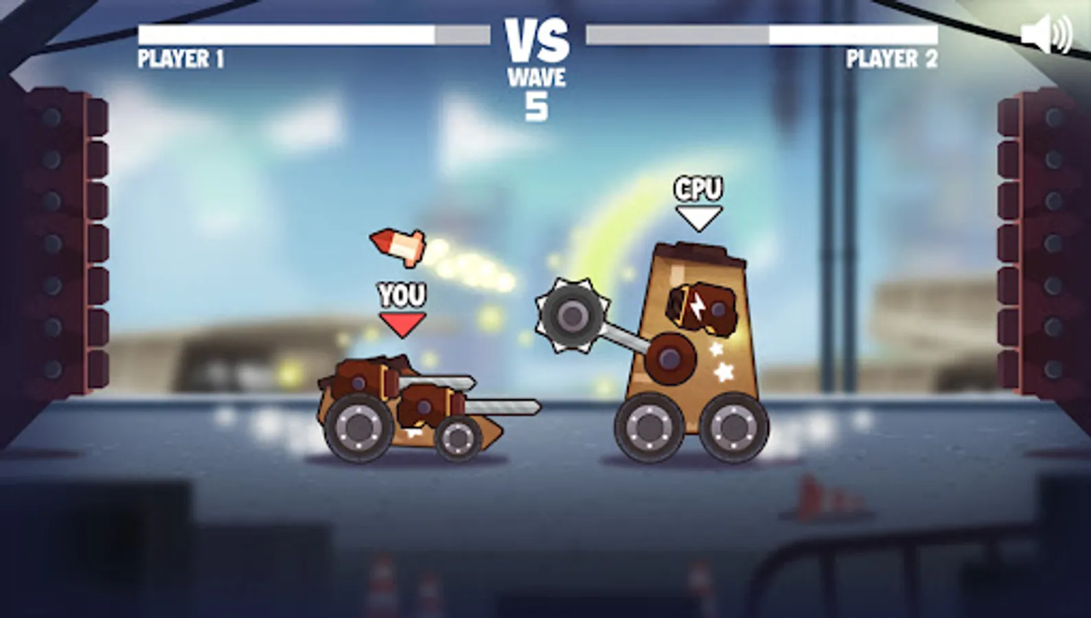 Tiny Crash Fighters is a fast-paced action game where you build your ultimate machine to fight against the CPU or challenge all your friends. Choose your favorite fighter, wheels, and weapons and conquest the arena to be the best player. Use more than 30 vehicle parts to build your fighting robot vehicle and unleash the power of your machine! Earn coins and unlock more special parts such as Drills, Saws, Missiles, Turbo, or Machineguns, and don’t lose the fight.