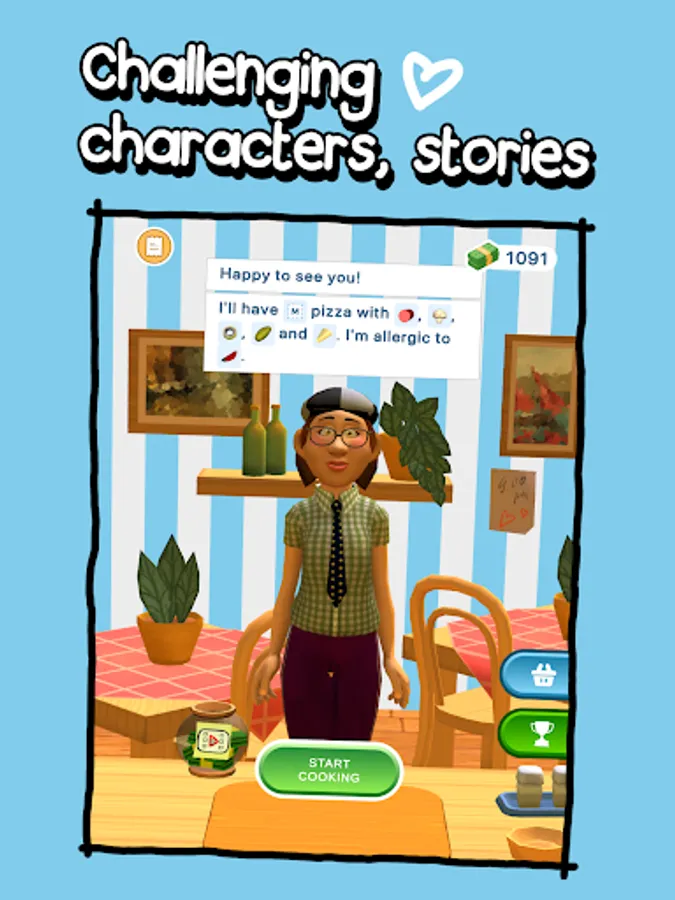 You are in charge of running your own pizzeria: from figuring out what people need to upgrading your knives and toppings.