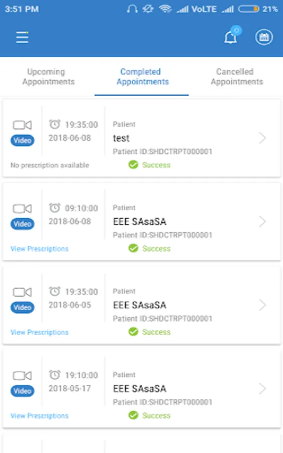 -Doctor can check their upcoming ,cancelled and past appointments.