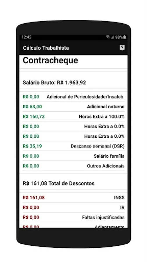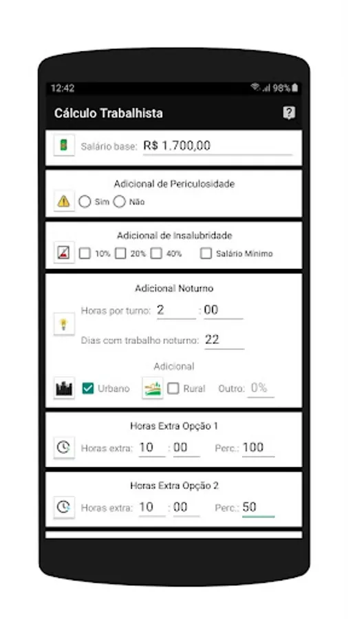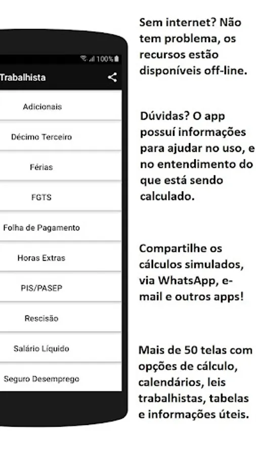 It goes beyond calculations. We have a team available to guide you in the use of the application and answer your questions about labor issues, new rules, and provide all necessary support. Download the app and under Extras, go to Indi Responde.