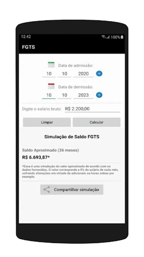 FGTS calculate and understand the benefit, monthly amount deposited, accumulated balance, fine receivable.