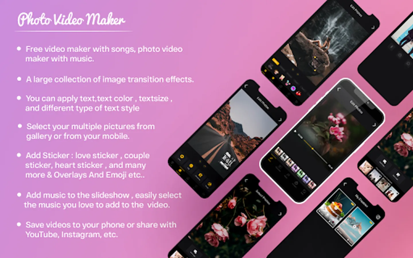 -Lyrical Photo Video Maker with Music for Video Status.ly allows you to pick your favorite pictures and add your favorite song lyrics from a collection of songs.
