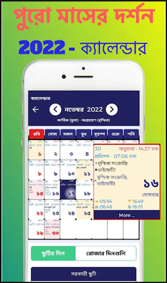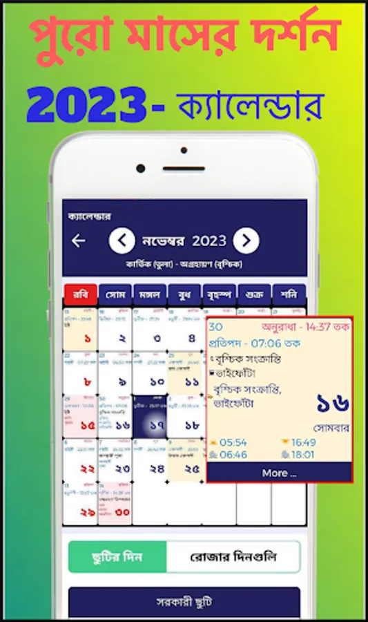 Bengali festival calendar 2023 - 2024: All festivals, Fasting days displayed month wise. Bengali calendar new app with best Bangla Calendar user experience