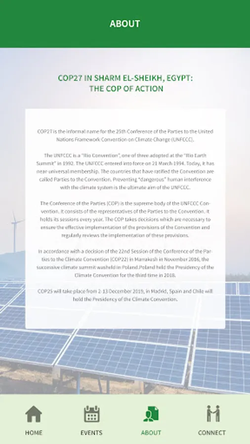 At COP 27, countries come together to take action towards achieving the world's collective climate goals as agreed under the Paris Agreement and the Convention. Building on the outcomes and momentum of COP 26 in Glasgow last year, nations are expected to demonstrate at COP 27 that they are in a new era of implementation by turning their commitments under the Paris Agreement into action. The conference will take place from 6-18 November 2022 in Sharm el-Sheikh, Egypt. Heads of State and Government will attend the Sharm el-Sheikh Climate Implementation Summit on 7 and 8 November. A high-level segment primarily attended by Ministers will take place from 15-18 November.