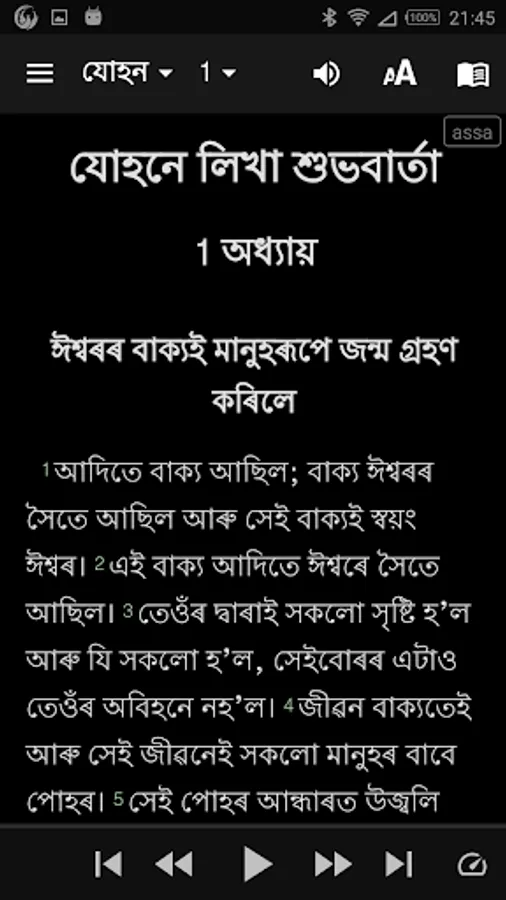 • Give your phone permission to download (95% of) the audio files for the Assamese NT texts. Once downloaded, the audio files will remain on your device for further use in offline mode.