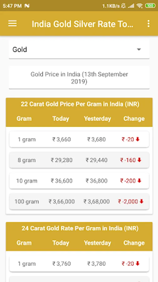 - Gold Price (22 Carat and 24 Carat Gold Price)