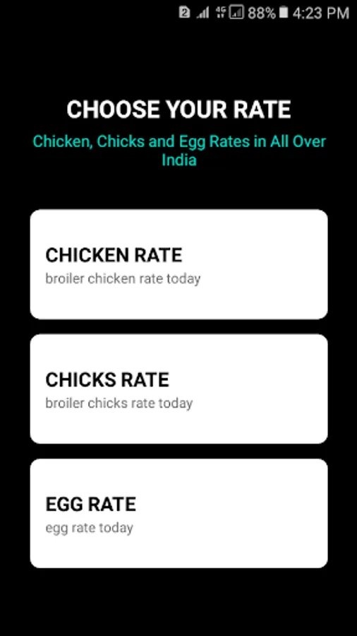 India poultry rate App helps you track poultry rates in major Indian cities.