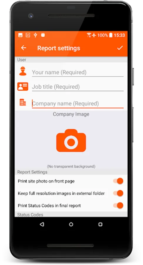 - Add personal details to your reports; include user's name, company name, logo, job title.