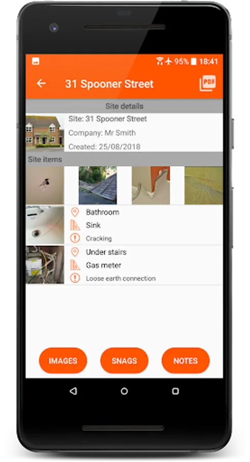 Using Site Report Inspection App, you can make notes, take pictures and record snags covering all the required details and share PDF report.
