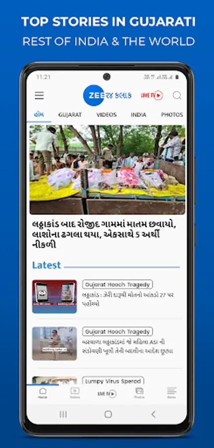 * Live coverage of news from Gujarat (ગુજરાત), India (ભારત), Business (બિઝનેસ), Bollywood (બોલીવુડ), Health (આરોગ્ય)