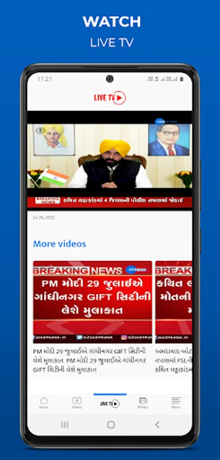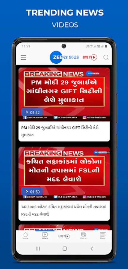Zee 24 Kalak app (ઝી 24 કલાક ઍપ) is specially designed for Android phones and tablets.
