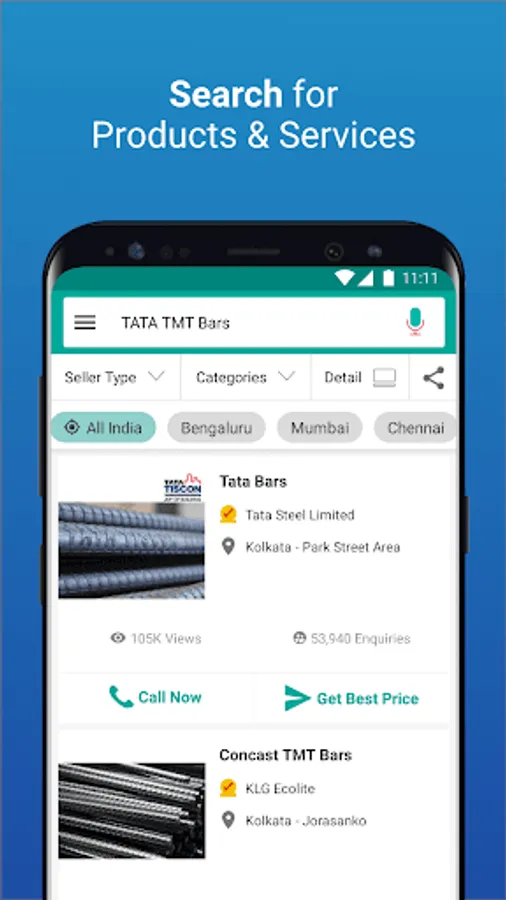 With the IndiaMART App, millions of buyers & sellers can connect with each other to fulfill their business requirements. Browse through India's 🇮🇳 largest online B2B marketplace & explore the widest range of 63 Mn products, services & 5.9 Mn genuine Suppliers for your sourcing requirements. IndiaMART brings together leading manufacturers, exporters, verified sellers & suppliers looking for an easy way to widen their reach manifold.