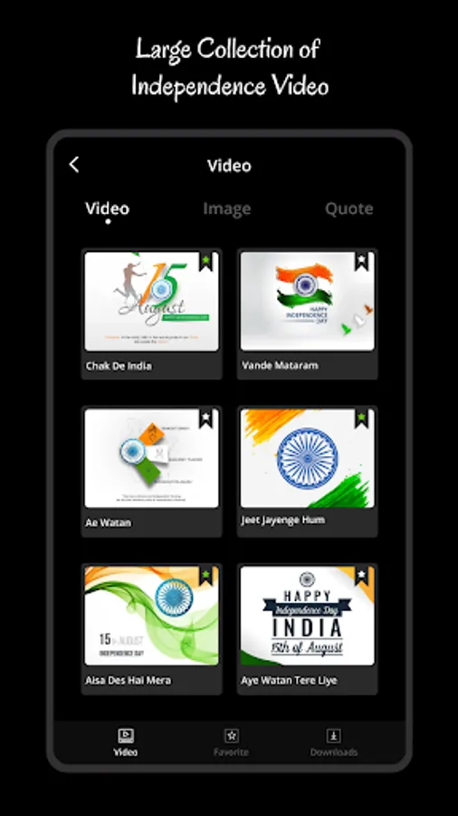 Independenceday Video Status app is created for sharing amazing videos, photos and Quotes to your friends and family on the occasion of Independence Day. You can go through a huge collection of videos, images and quotes in this app.